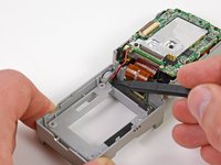 Use a soldering iron and solder wick to desolder the speaker contacts on the motherboard assembly.