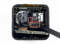 • The view onto the rest of the mainboard is almost unobstructed now and reveals that the microSD slot is actually soldered directly to the second part of the mainboard. A rather unusual choice, as that's often one of the first components to get "outsourced" from a mainboard when space is tight.