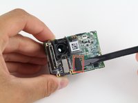 Once the internal components are removed, take out your handy dandy spudger tool and pry off the piece of tape that holds down the image sensor.
