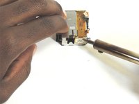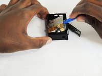 Insert a metal spudger between the back plastic housing and the camera board assembly. Working around the edge to be careful of the inner components, carefully remove the camera.