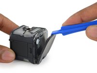 Prying at the front and back covers didn't get us anywhere either. So, we gave our new camera a hot iOpener hug to soften up the adhesive on its rubber cover—and then started cutting and peeling.