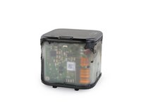 Unfortunately we didn't find any external screws or clips—looks like this puppy is all sealed up. Time to attack the Borg cube with some flush cutters.