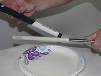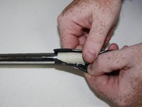 Remove the backing from the double-sided tape; then twist the overhanging 1/2 inch of tape and push it inside the shaft.