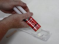 Pour epoxy into a container and stir to mix it together. Once epoxy is mixed together, spin the shaft tip into the epoxy to prepare for insertion into the head.