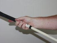 To replace the grip of the club, place the club on a level surface where you can cut a straight line through the grip using a razor blade or a utility knife.