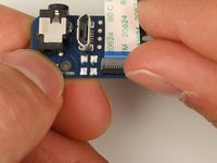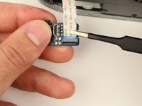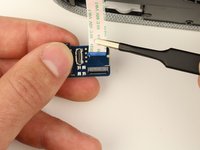 Grip the ribbon cable near the port with round-tip tweezers, and pull directly backwards, parallel to the board, to disconnect the ribbon cable. You can also use your fingers if you don't want to grab your tweezers.