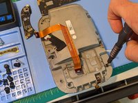 As the front enclosure starts to loosen, it will begin to "pop" off. Carefully flip up the front enclosure to access the flex cable, and disconnect the cable to remove the front enclosure.