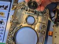 Once you've removed the rubber plugs, you'll see that six T10 screws secure the metal core of the device to the back plastic/fabric enclosure cover.
