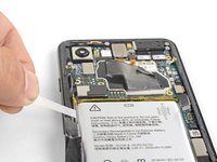 Insert the point of a spudger underneath the black battery pull tab on the left edge of the phone.