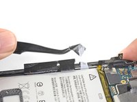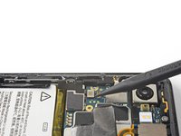 Use the point of a spudger to pry up and disconnect the battery press connector from its socket near the right edge of the phone.