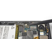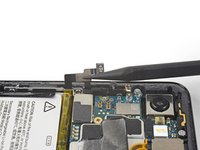 Use the point of a spudger to pry up and disconnect the buttons connector from its motherboard socket near the left edge of the phone.