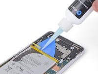 While holding the phone in a tilted position, apply a few drops of adhesive remover or high concentration isopropyl alcohol along the edge.