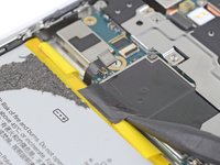User tweezers to carefully peel up the yellow tape over the fingerprint sensor connector.