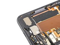 Peel back the ribbon cable that's adhered to the phone's frame. It's secured with some light adhesive.