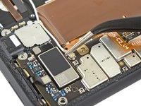 Lift the battery up and away from the phone to remove it. You may need to peel the battery away from any leftover adhesive tabs.