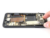 Lift the battery up and away from the phone to remove it. You may need to peel the battery away from any leftover adhesive tabs.