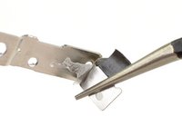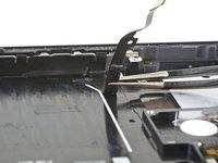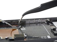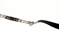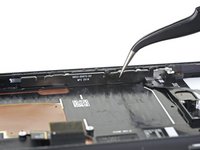 Using a pair of tweezers, peel away leftover flex cable that's adhered to the back side of the button bracket.