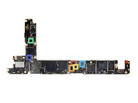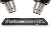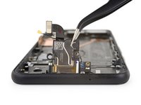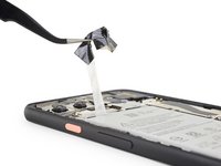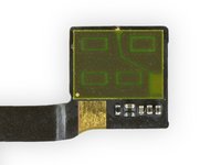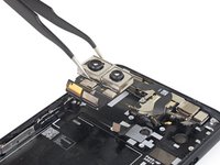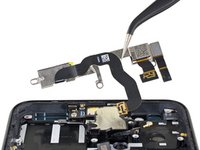 With no more fingerprint sensor, we hoped to cut in without encountering any flex cable booby traps—but alas, a new even shorter cable connects the miscellany on the rear camera bump: flash, microphone, and the spectral + flicker sensor.