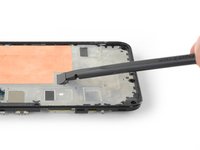 At a steep angle, carefully push the pick into the gap about 1/4 inch (6 mm). The pick should slide in below the OLED panel.