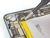Use the same process to remove the pull tab located at the bottom left edge of the battery.