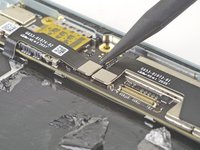 Use a T3 Torx driver to remove the two 2.9 mm screws securing the motherboard to the rear case.