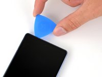 Firmly press the pick into the cutout and lower it flat to the screen until it slides under the glass.