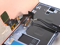 Use blunt nose tweezers or your fingers to peel and remove the square piece of adhesive near the battery cutout.