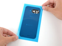 Lay the adhesive onto the bottom of the back cover, making sure the cutout goes around the camera bezel.
