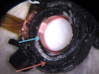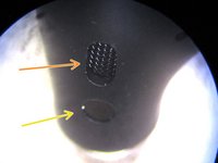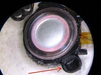 Closeup view of the magnet that to holds the Bud in the charger. The magnet located is below the speaker in the sound chamber area