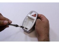 Using opening plastic tool, pry the two grey cases from both sides of the device.