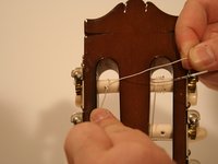 Turn the tuning knob in a clock-wise motion to tighten the string until the string makes a clear sound when plucked.