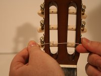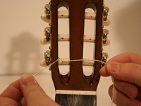 As the string winds around the tuning peg, make sure that the string passes over the loose end from the knot at least once. This will prevent "slipping" (detuning) during tuning and will help keep the knot tight.