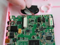 Using the soldering iron, heat up the solder that is attaching the battery to the motheboard.