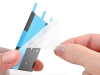 • Align the new battery adhesive over the frame, making sure that the three adhesive strips overlap properly.