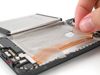 • Use tweezers, or your fingers, to peel the three battery adhesive strips off the frame.