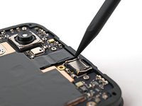 Use the tip of a spudger to pry up the front camera from the frame and separate its adhesive.