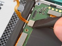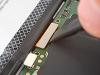 Use the flat end of a spudger to pry up and disconnect the display cable press connector, next to the battery cable.