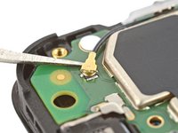 Use tweezers to carefully remove the layer of foam adhesive from the perimeter of the earpiece speaker's underside.