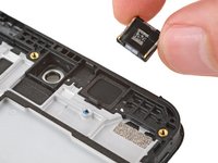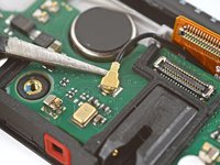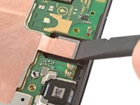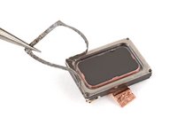 Use tweezers to carefully remove the layer of foam adhesive from the perimeter of the earpiece speaker's underside.
