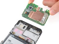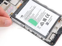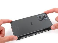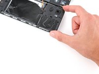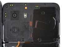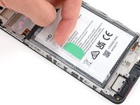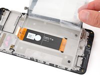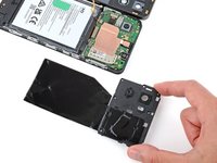 Lift the back cover off the frame and flip it over the left edge of your phone, laying the cover flat on your work surface.