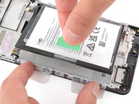 If the plastic battery film was damaged during removal, carefully remove it—be very cautious not to bend or damage the battery in any way. Apply new film to the battery, making sure the tabs go on the left edge.