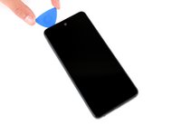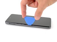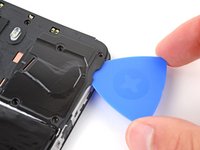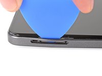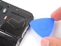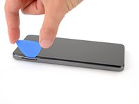 Insert the tip of an opening pick between the back cover and frame, at the SIM card tray cutout.