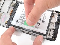 Use your fingers to carefully peel the three plastic tabs from the left side of the battery.