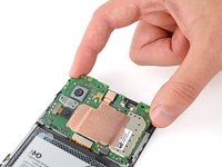 The front camera may have disconnected from the bottom of the board during removal. If it did, reconnect its press connector.