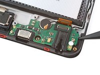 Use the point of a spudger to pry up and disconnect the charging board cable press connector on the top edge of the board.