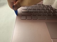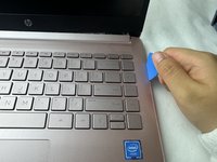 Use a pick or opening tool to pry along the edges of the back cover from the keyboard side of the laptop.