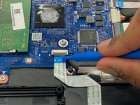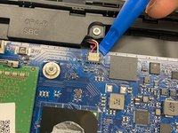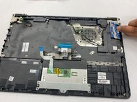 Use the blue opening tool to flip up the small locking flap from the ZIF connector that attaches the touchpad cable to the motherboard.