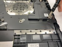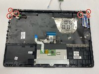 Remove the six 2.5 mm screws that secure the keyboard to its hinges using a Phillips #1 screwdriver.