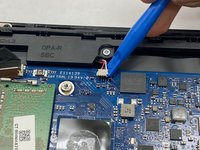 Use the blue opening tool to flip up the small locking flap from the ZIF connector that attaches the touchpad cable to the motherboard.