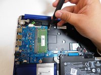 Insert an opening tool into the seam between the keyboard and the bottom panel.